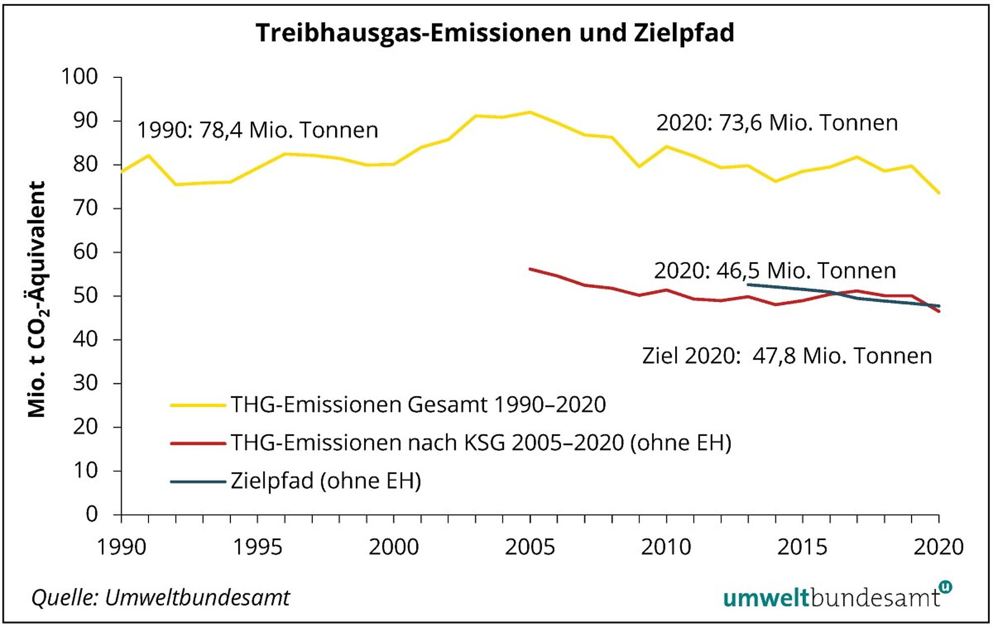 Die Treibhausgas-Emissionen in Österreich sind von 2019 auf 2020 um 7,7% gesunken und liegen bei 73,6 Mio. Tonnen CO2-Äquivalent, so die Treibhausgas-Bilanz des Umweltbundesamtes für das Jahr 2020. Das bedeutet ein Minus von rund 6,1 Mio. Tonnen im Vergleich zum Jahr 2019.